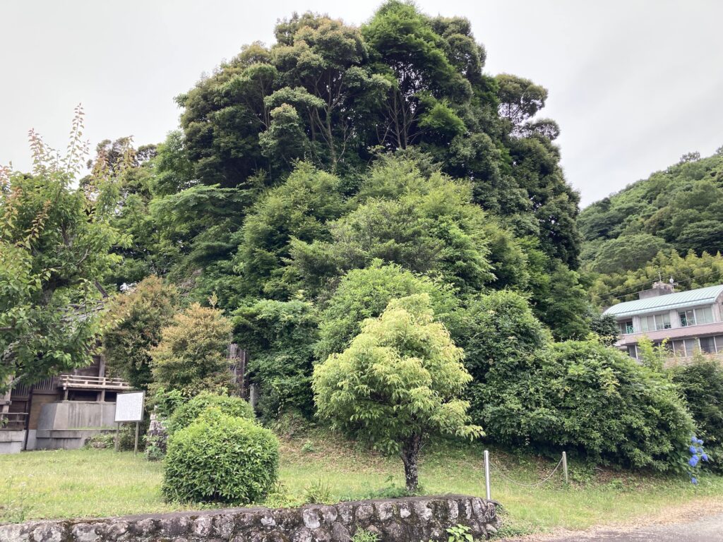 伊豆半島中央部に位置する式内社の「軽野神社」の社殿の後ろには、大きな岩の塊があり、鬱蒼と木が生い茂っていた。