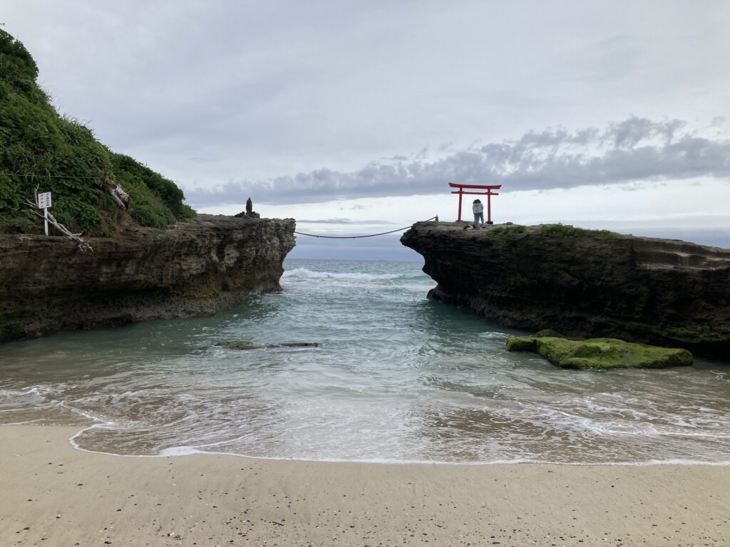先に述べた「信仰の軸」の通過点の一つである「伊古奈姫命神社」のそばの海岸には、鳥居が設けられていた。