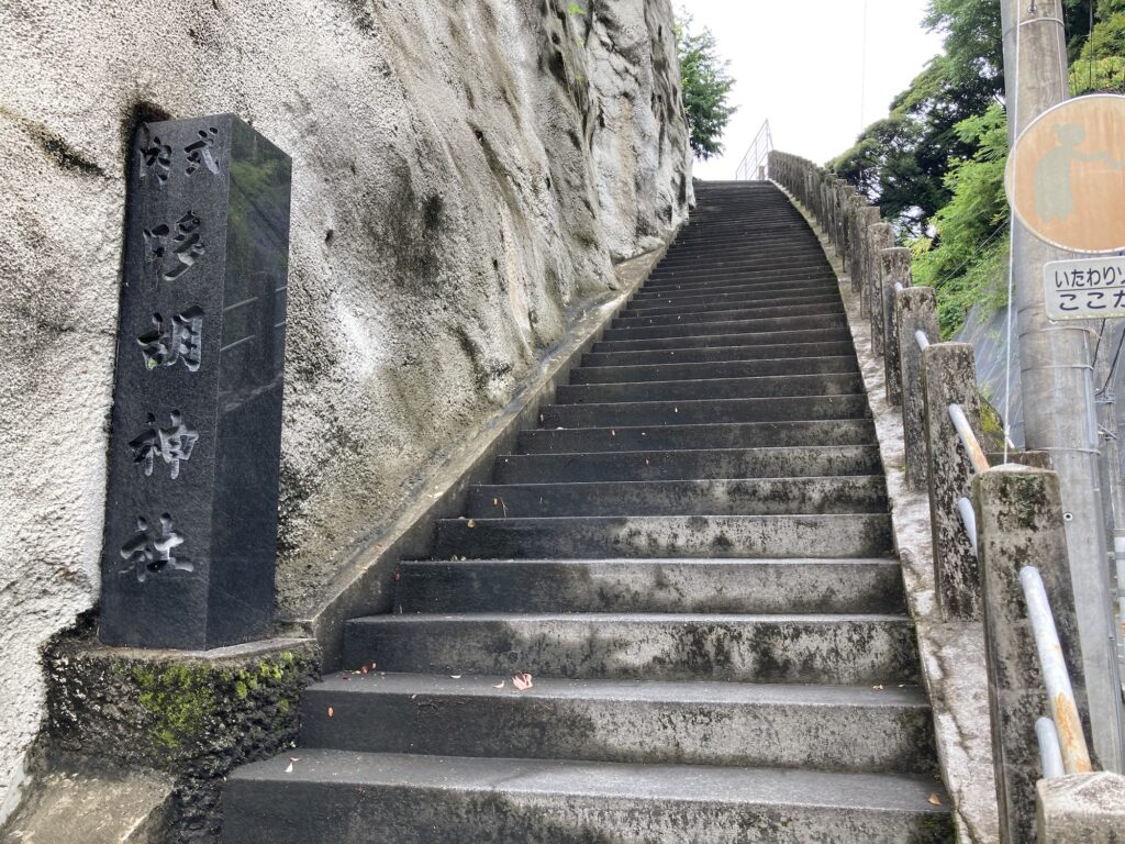 参道がとてつもなく急な勾配である。