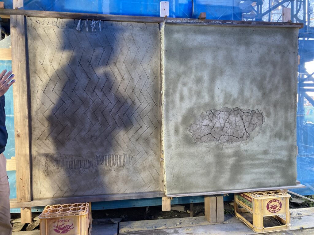 この写真は、以前参加した伝統構法の研修会で見させていただいた、「中塗り」の見本です。