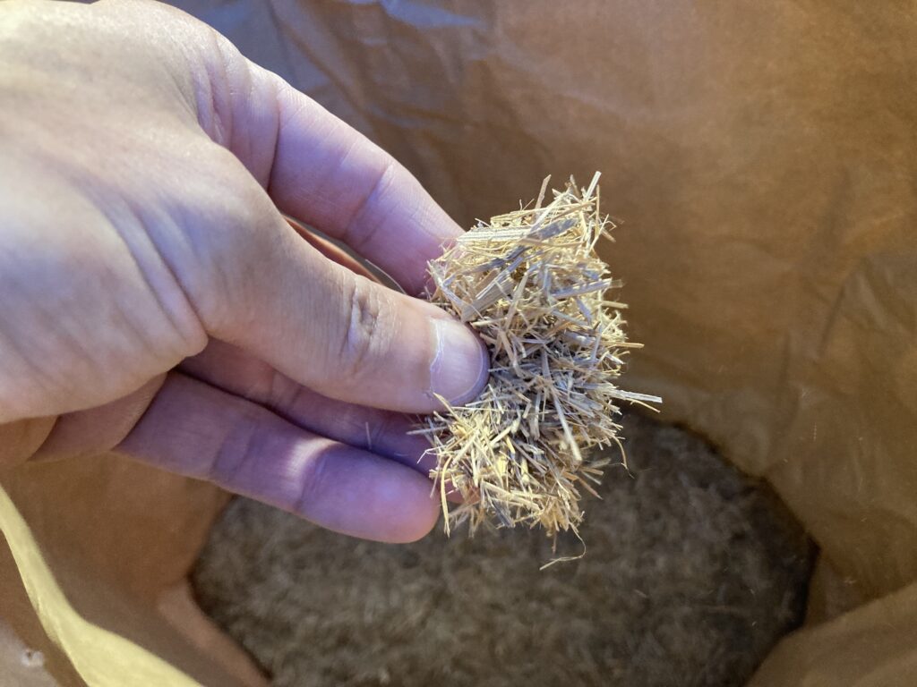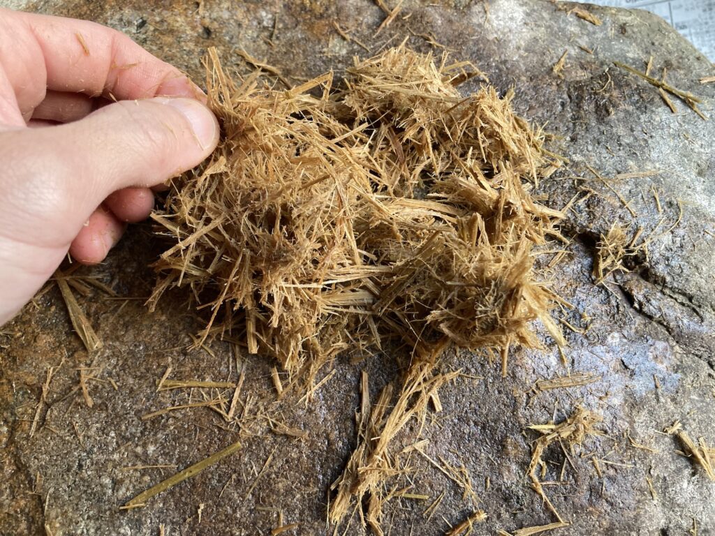 今回、ボウル1杯分のワラを全てほぐすのに、1時間ほどの時間がかかりました。
